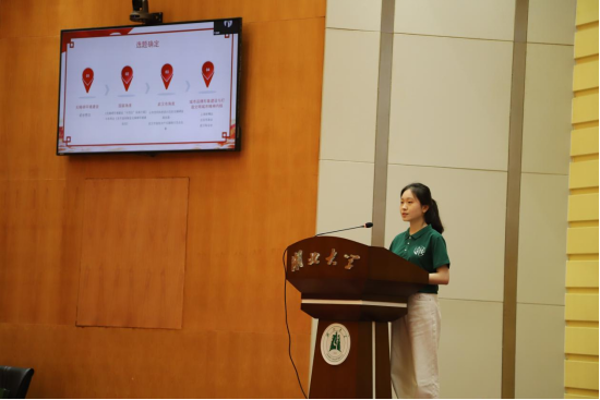 围绕大别山红色新闻文化的教学实践活动,威廉希尔WilliamHill官方网站马克思主义新闻观课程实践教学团队指导教师陈妮阐释了课程建设的思路,介绍了打通课程与媒体通道、建立校内外协同教学机制、加强案例库资源建设等举措。邓林老师通过团史讲述展示了1922-1925年中国社会主义青年团的变化与发展,生动诠释了什么是“行走”中的思政课。本科生与研究生代表肖楚晗、黄夫同、播音与主持艺术专业“拾光”项目团队分别以“为无障碍注入青年力量”“红色歌谣的传播”“传承红色基因 奉献青年力量”为题,分享了各自在“行走”中的心得与体会。