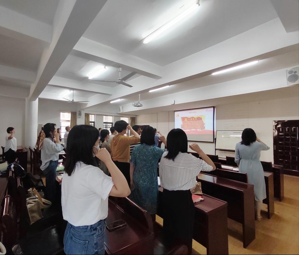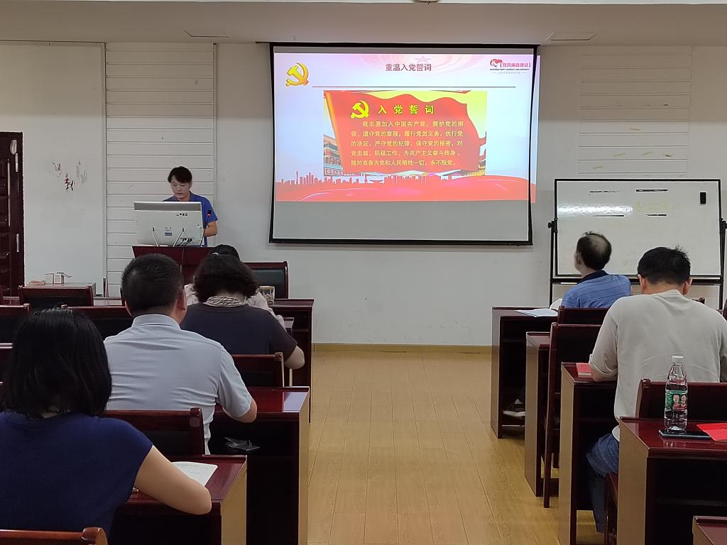 活动伊始,第二支部组织委员周亚齐通报了两个支部党员到会情况和党费交纳情况,第一支部纪检委员陈雨坤同志作为领誓人带领大家重温入党誓词。