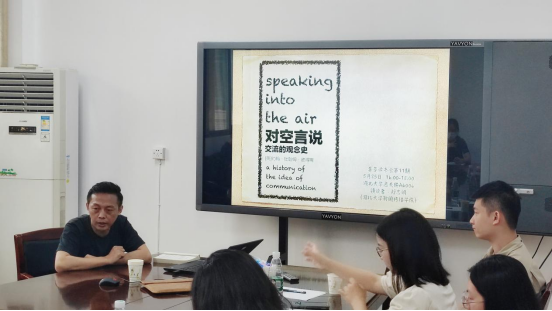 本网讯(通讯员 段沛昭) 5月26日下午,公司青年教师郑忠明博士与师生分享了约翰·杜翰姆·彼得斯的经典著作《对空言说:传播的观念史》的阅读心得。本次读书会由集萃读书会召集人张萱副教授主持,张帆、陈妮、赵静宜、胡洁、黎明等公司教师以及20、21级部分研究生共同参与。
