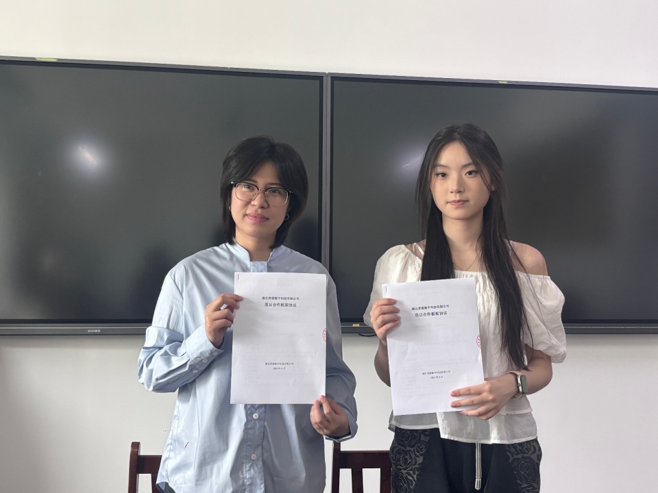 经过汇报展示和专业评审点评后,最终,广告2301班的三个员工项目团队与湖北青漾数字科技有限公司签订了合作协议。