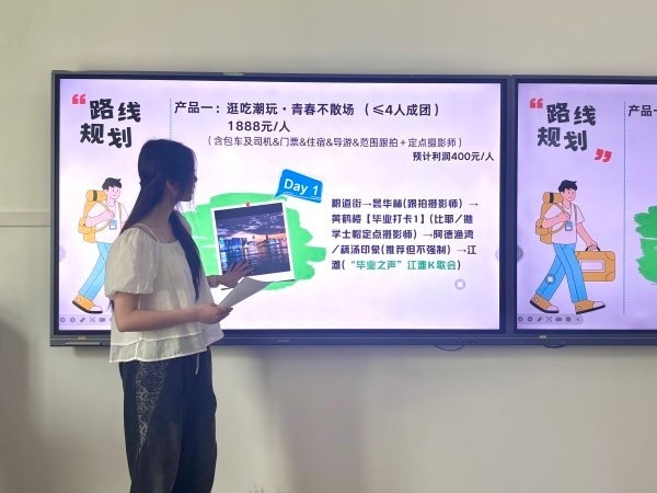 6月4日上午,广告2301班的员工在这堂课上进行结课汇报,五个项目团队依次登台,围绕“人人都是武汉旅游推荐官”的主题展开精彩展示。