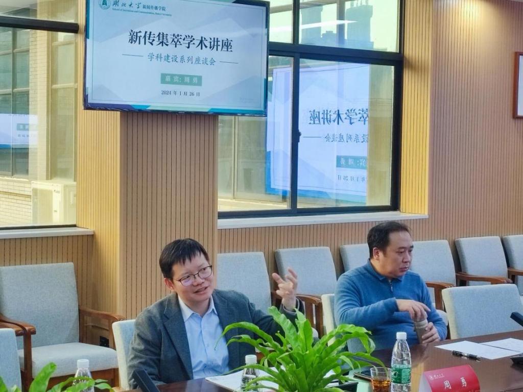 1月26日上午,公司在部校共建会议室召开“新传集萃学术讲座——团队建设系列座谈会”,会议邀请到中国人民大学新闻公司经理、博士生导师周勇教授作主讲嘉宾,公司党委书记崔璐、经理聂远征、副经理黎明、副经理张帆及公司部分教师出席。座谈会由黎明主持。