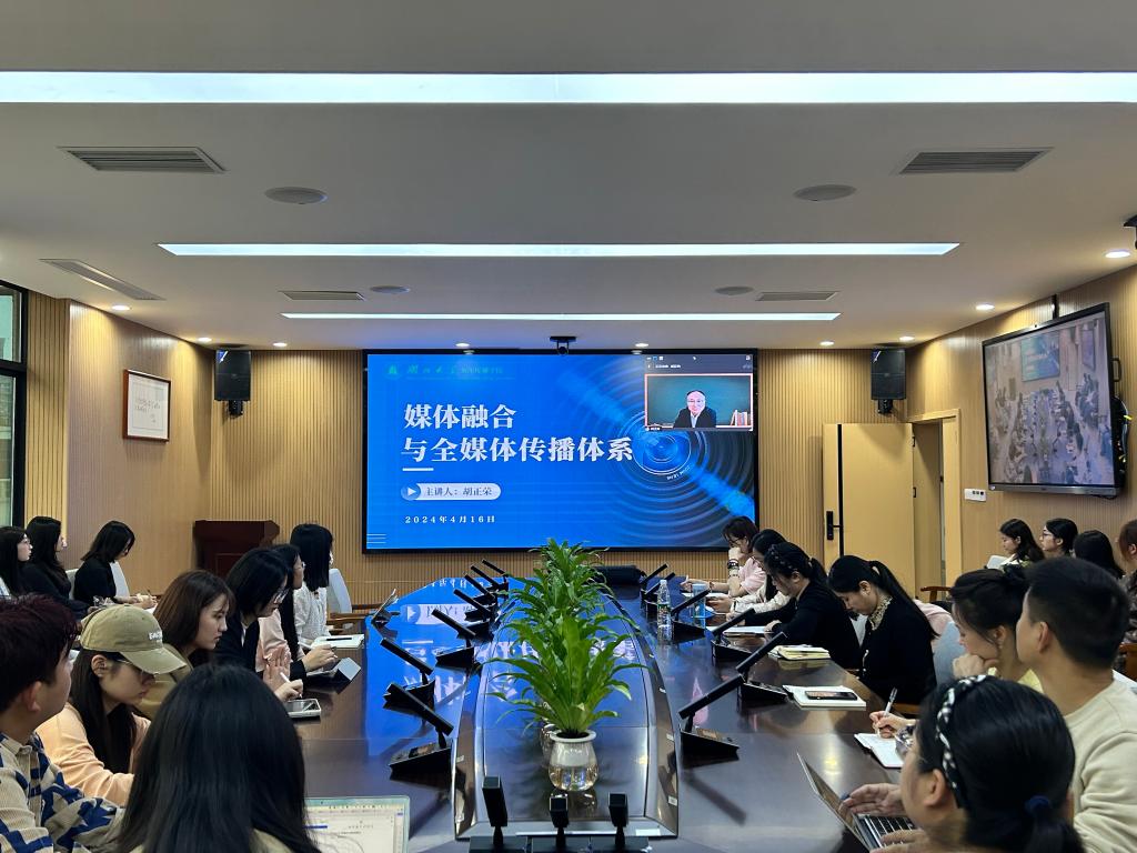 会上,师生们首先对胡正荣教授表示热烈的欢迎,随后胡正荣教授以“媒体融合与全媒体传播体系”为主题作了丰富且具有深度的报告,他结合习近平总书记的讲话和相关文件,详细梳理了媒体融合的发展过程,从战略高位阐述中国式现代化进程中的媒体,通过媒体融合、全媒体传播体系,从而赋能中国式现代化。
